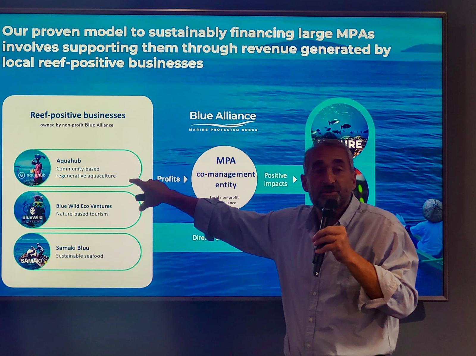 🔹 La finance d’impact au service des AMP avec Blue Alliance, l’International Coral Reef Initiative (ICRI) et Global Fund for Coral Reefs : Un modèle évolutif de gestion des Aires Marines Protégées (AMP) a été présenté, reposant sur des investissements dans des entreprises sociales de l’économie bleue. Cette approche met en évidence plusieurs leviers essentiels : développer des modèles économiques autonomes pour assurer la pérennité des AMP, mobiliser des investissements privés et philanthropiques pour combler les déficits de financement, et encourager l’émergence d’entreprises sociales locales capables de générer des revenus durables tout en contribuant aux objectifs de conservation. Un modèle pensé comme réplicable à grande échelle partout dans le monde.